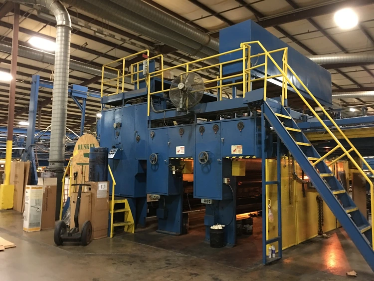 88" X 200 FLEXOLINE JUMBO FLEXO FOLDER GLUER, EQUIPPED WITH; TOP PILE FEEDER, FIXED FRAME MACHINE, ELECTRIC RUNNING REGISTERS, STEEL PRINT CYLINDERS, MOTORIZED SLOTTING HEAD SET-UP,, SEGMENTED ROTARY DIE CUTTING SECTION WITH MOTORIZED YOKED SET-UP, MOTORIZED FOLDING RAILS, SQUARING / ACCUMULATION SECTION, POST COMPRESSION SECTION